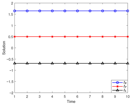 If , , and and . Given initial conditions , , , , then we can get the following simulation Figure 1.
