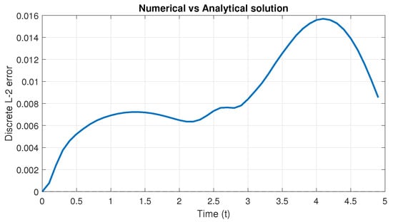 - The theorem on the convergence property of the finite-difference scheme imposes very restrictive assumptions on the regularity of the solutions. Those assumptions were established in the article [53], and the proof of the consistency property of those discrete operators relies on Taylor’s theorem and the mean-value theorem. In light of those facts, the regularity assumptions are indispensable, indeed. Obviously, these conditions are an important limitation in our approach. Evidently, they can be fixed by using a different approach, such as the use of weighted-shifted Grünwald differences [58]. Unfortunately, this last methodology requires a more complicated computational implementation, which leads to longer computational time.