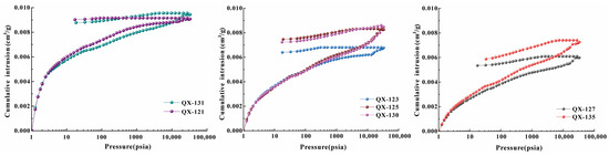 High-pressure mercury compression curves of shale samples from the Niutitang Formation.