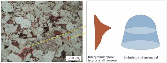 Schematic diagram of the pore shape of tight sandstone in the Linxing area.