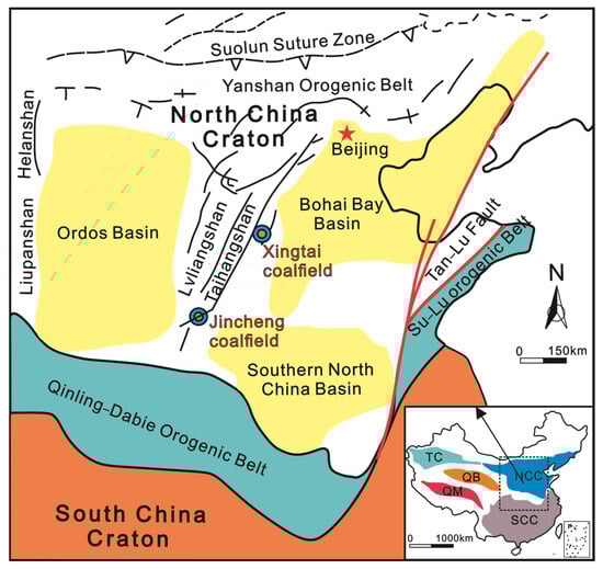 Distribution map of major basins in North China. Note: In the figure, TC stands for Tarim Craton, QB for Qaidam Block, and QM for Qiangtang Block.