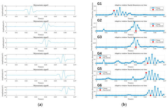 (2) The adaptive fractal box-counting dimension method accurately detects the first-arrival time by characterizing local complexity variations in the waveform. Its ability to capture abrupt structural changes enables the precise identification of arrival points, even under strong noise interference. The adaptive window strategy dynamically adjusts to signal characteristics, improving both accuracy and computational efficiency. This method proves particularly effective in the real-time monitoring of hydraulic fracturing, facilitating fracture growth tracking and enhancing reservoir characterization.