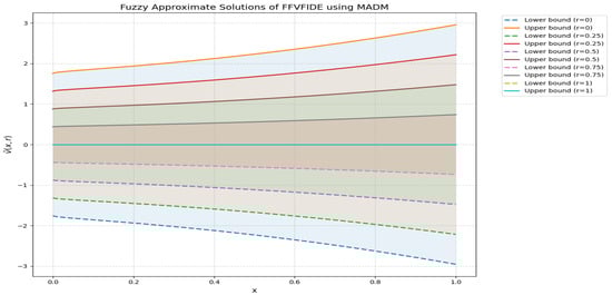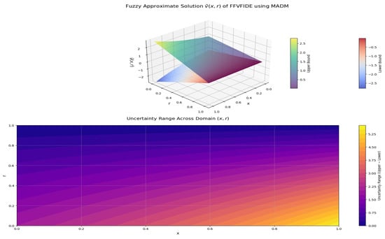 Unlike the fuzzy Laplace transform, which requires the inversion of complex integral expressions and is more suitable for linear problems, MADM can efficiently handle nonlinear fuzzy kernels due to its recursive nature and lack of discretization. Similarly, compared to the Chebyshev spectral methods, which are best suited for smooth solutions over bounded domains, MADM provides analytical parametric solutions and avoids numerical instability associated with polynomial interpolation.