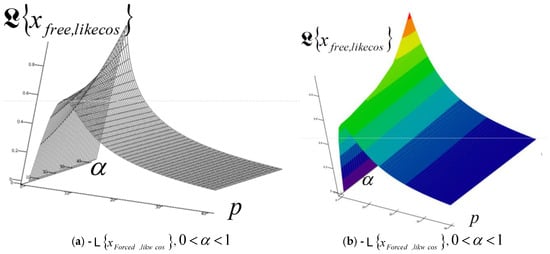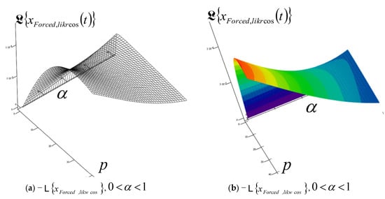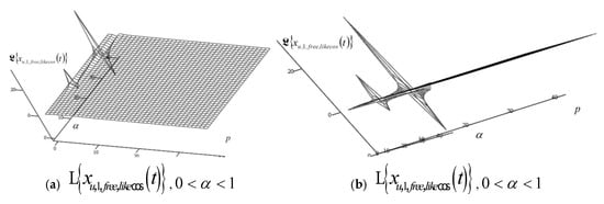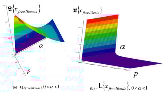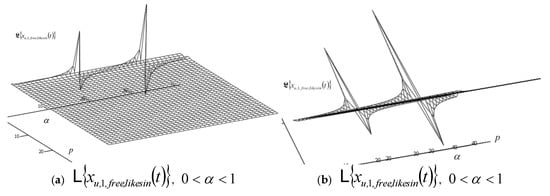 Then, we help ourselves by visualizing the LTIGC, which corresponds to the RDDFT. This visualization of LTIGC is drawn using certain analytical expressions and displayed as space surfaces in the coordinate systems of LT with the following coordinate axes: Laplace transformation elongation , Laplace transformation parameter , and fractional order differentiation exponent in the interval .