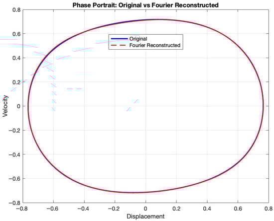 On the other hand, other approaches, such as Legendre and Chebyshev polynomial expansions, offer superior smoothness and rapid convergence for suitably smooth, nonperiodic problems, but they display practical limitations when applied to periodic steady-state identification of harmonically excited systems; specifically, Fourier series provide a natural frequency domain representation for periodic signals that polynomial bases cannot match without substantially higher expansion orders, which in turn increases computational cost and exacerbates numerical conditioning problems [31,32,33]. Consequently, polynomial spectral methods often require markedly higher truncation orders to attain the same fidelity as a modest number of Fourier harmonics for periodic responses, and the resulting large basis matrices can suffer ill-conditioning that degrades the numerical stability of regression-based parameter estimation [31,32]. State-space identification techniques, while powerful for linear and time domain problems, typically rely on iterative optimization routines and observer/simulation loops that become cumbersome for strongly nonlinear Duffing-type dynamics and do not yield the direct linear-in-parameters regression afforded by the Fourier–GL approach [27,34]. The principal advantage of the Fourier–GL methodology is therefore its alignment with periodic steady-state behavior, its ability to produce smooth, analytically differentiable reconstructions (including fractional derivatives) through harmonic synthesis, and its transformation of a nonlinear parameter identification task into a linear regression problem that is computationally efficient and numerically robust for harmonically excited fractional-order oscillators [27,31].