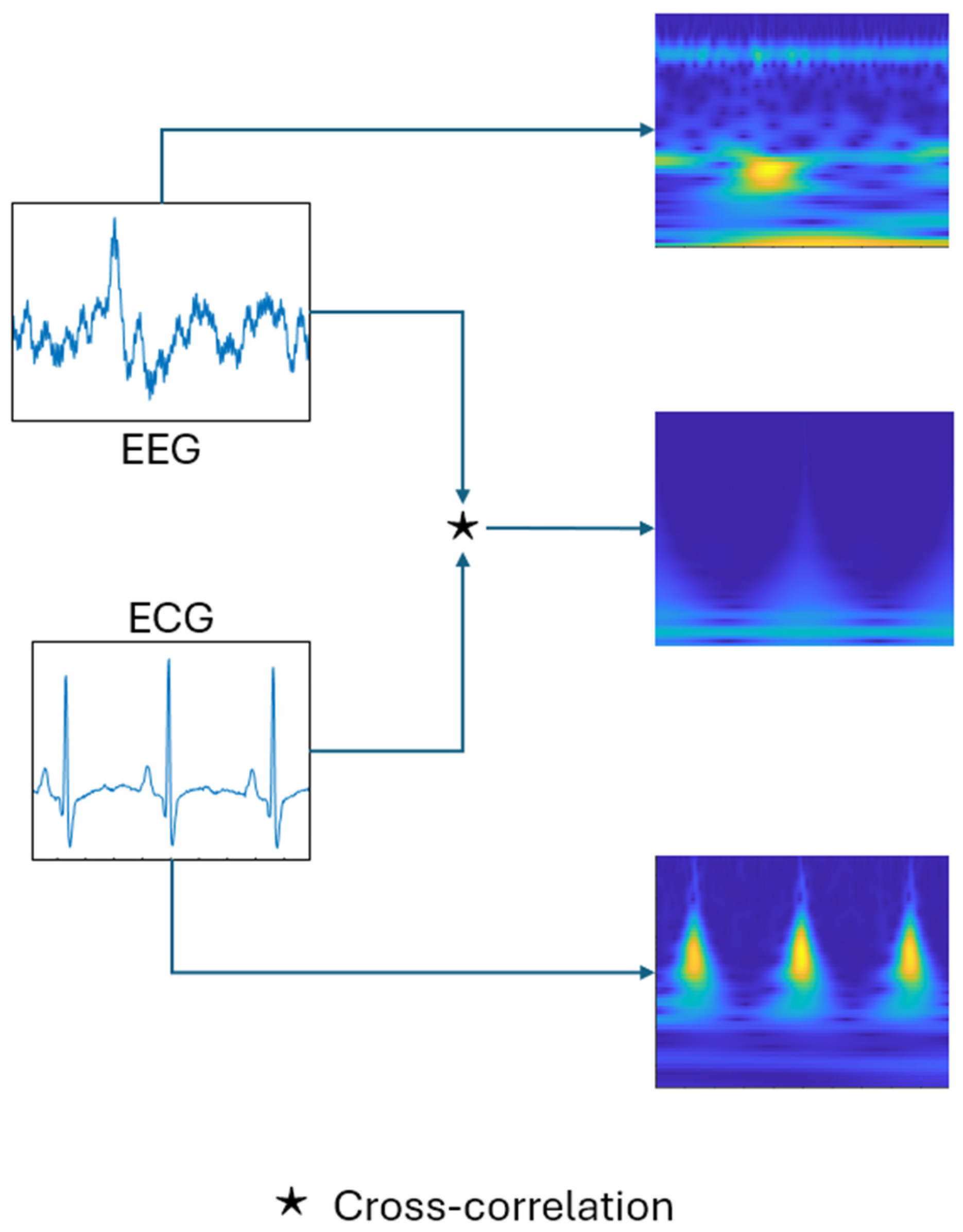 | Input: Biscalo: Binary class activation map extracted from scalogram, MI, ER, SS. Output: FD: Fractal dimension, trained weights’ matrix (W). 1: Find the largest dimension and round it up to the closest power of two. Max_dim = max(size(Biscalo)) = 2[log2(Max_dim)] 2: Ensure the image is padded to match r if its original size is insufficient. if size(Biscalo) < size() Pad_wid=((0, −Biscalo.shape [0]), (0, −Biscalo.shape [1])) Pad_Biscalo=padding(Biscalo, Pad_wid, mode=‘constant’, constant_values=0) else Pad_Biscalo=Biscalo 3: Create an array to store the number of boxes at each scale level. n = zeros(1, +1) 4: Count the number of boxes at scale r that overlap with any active (positive) region. n[+1]=sum(Biscalo[:]) 5: While >1: a. Divide r by 2 to reduce its scale. b. Replace with the newly computed value. 6: Calculate log() and log() for every scale r. 7: Apply linear regression to the log–log data points. 8: FD corresponds to the gradient of the best-fit line in the log–log space. Return FD 9: Training the proposed model CWT=MMSE(MI, ER, SS) CWT=IFD(MI, ER) SMDA= HLF= : intermediate learnables. return W. |