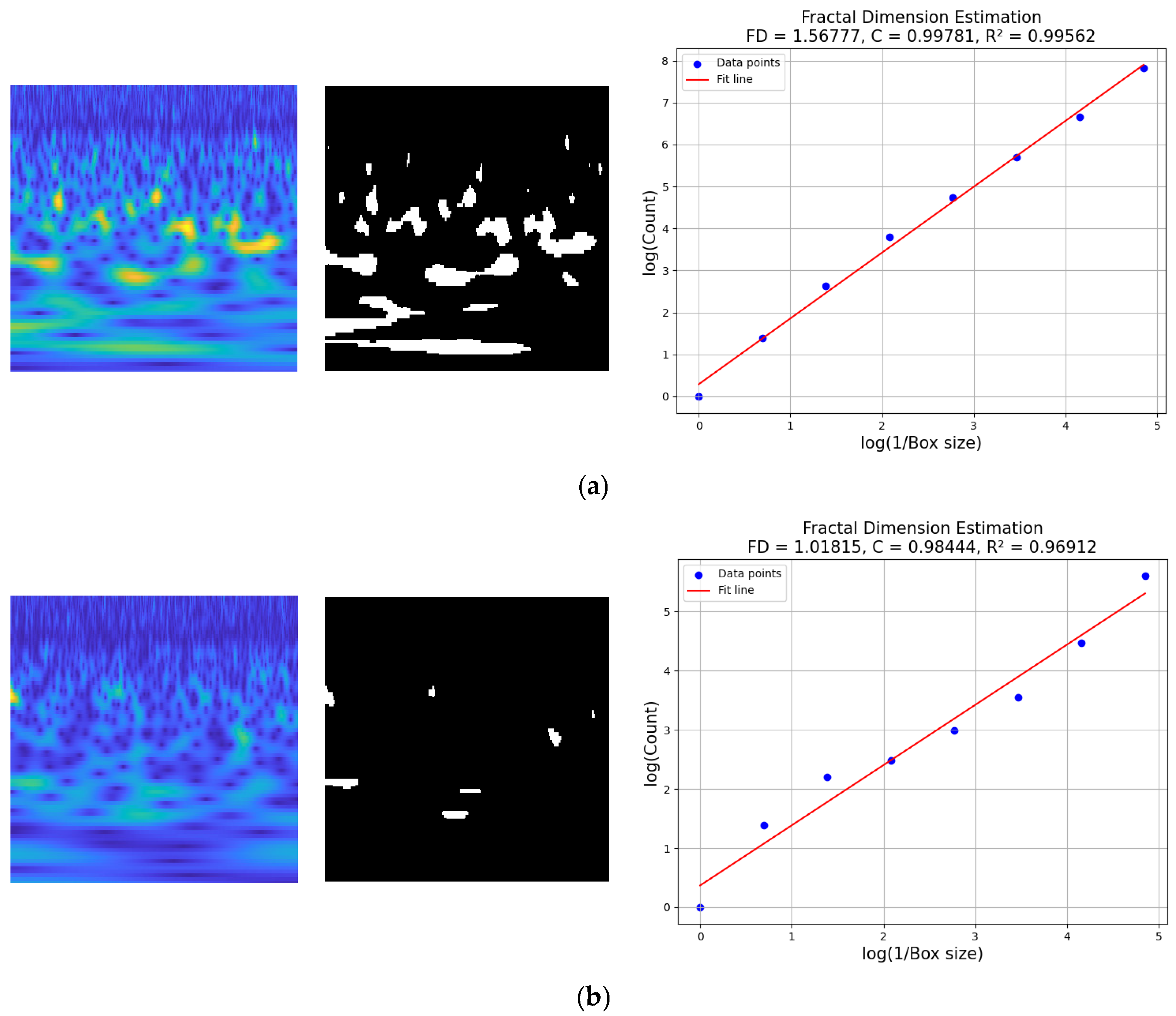 - Fractal dimension estimation (FDE) was employed for the classification of left-hand motor imagery (LMI) and right-hand motor imagery (RMI), confirming that the proposed method can effectively extract the discriminative features for this task. In addition, our algorithm is publicly accessible via (https://github.com/dguispr/Multi-BioSig-Net.git, accessed on 1 September 2025).