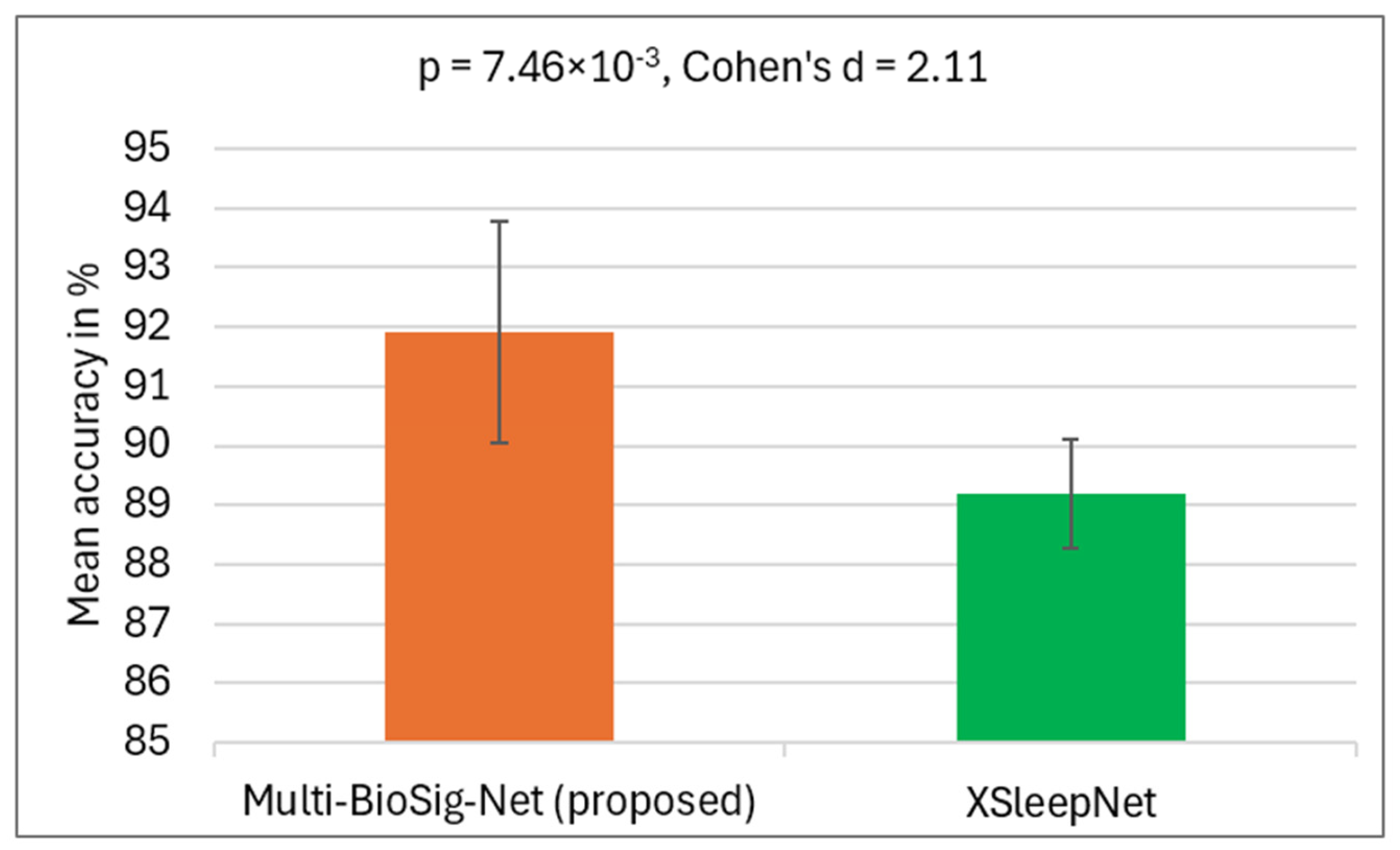 - The proposed Multi-BioSig-Net addressed the data scarcity and variability issues by considering multimodal data and the cross-correlation between them for data diversification and parameters’ generalization to mitigate the model’s underfitting on local optima due to a few training samples.