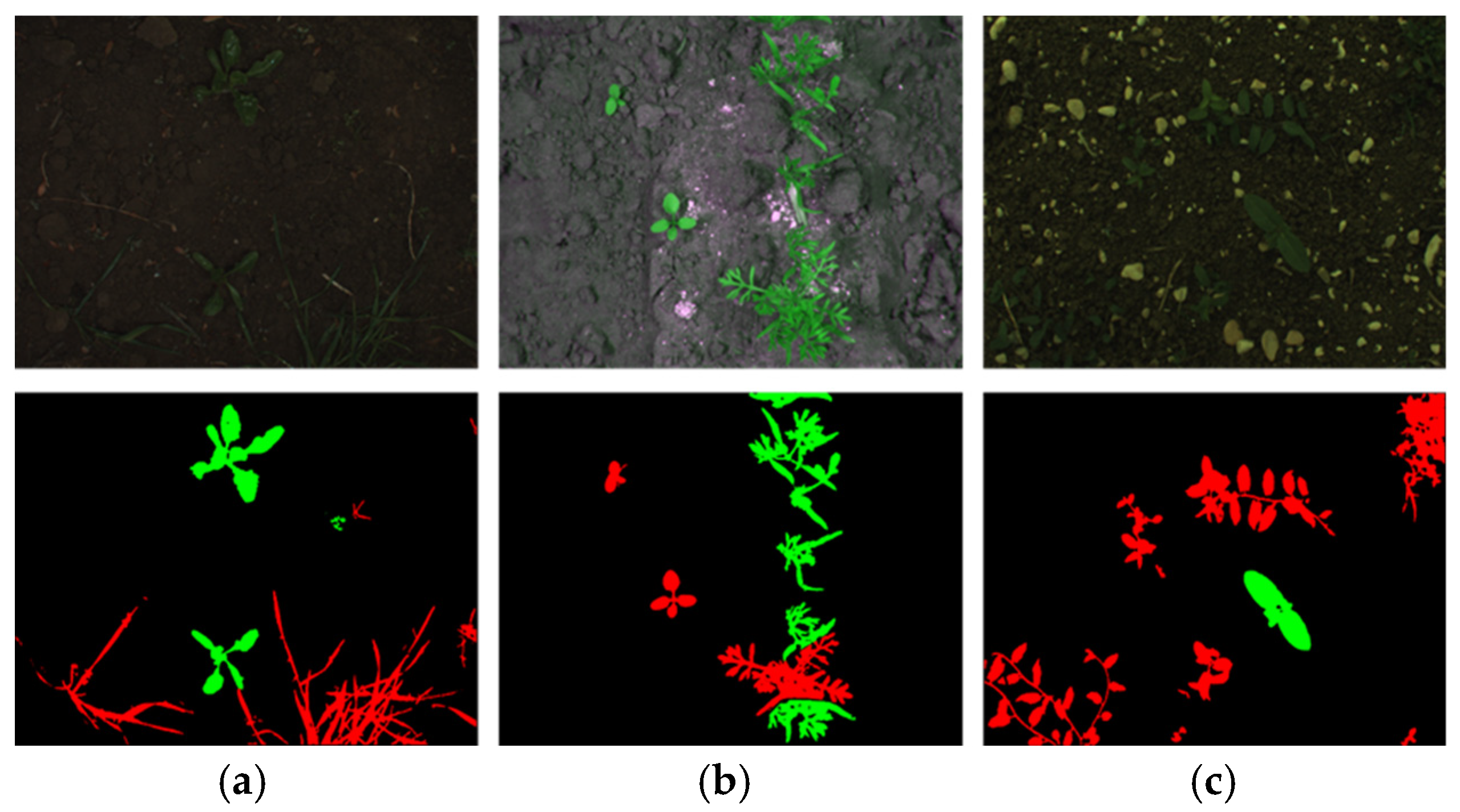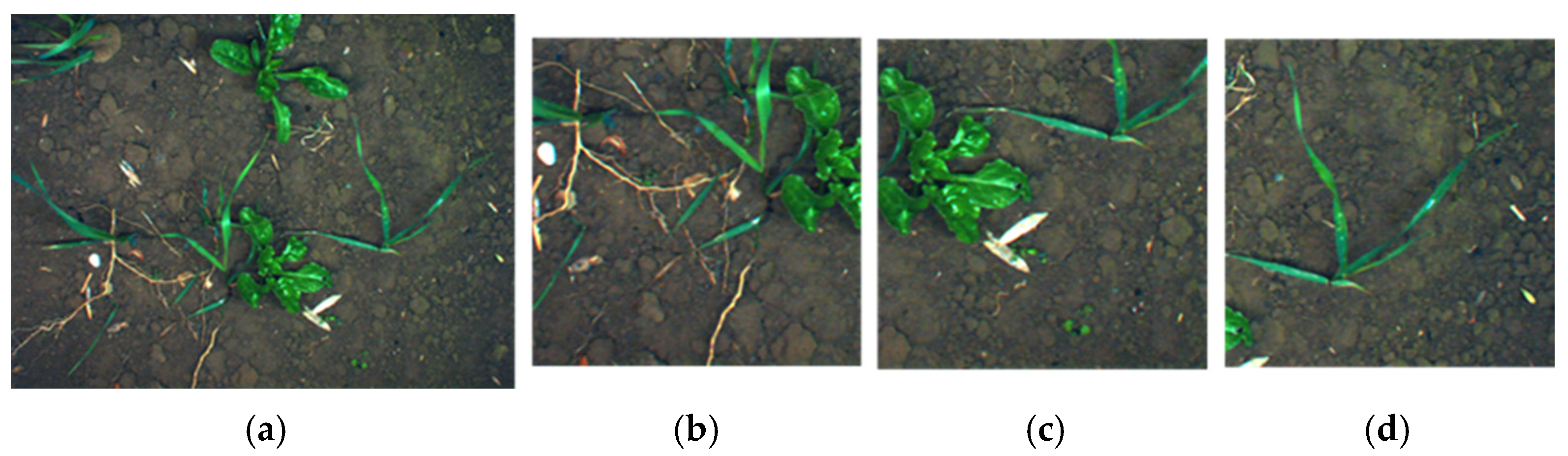 - Haug, S.; Ostermann, J. A Crop/Weed Field Image Dataset for the Evaluation of Computer Vision Based Precision Agriculture Tasks. In Proceedings of the Computer Vision—ECCV 2014 Workshops, Zurich, Switzerland, 6–7 and 12 September 2014; pp. 105–116. [Google Scholar] [CrossRef]