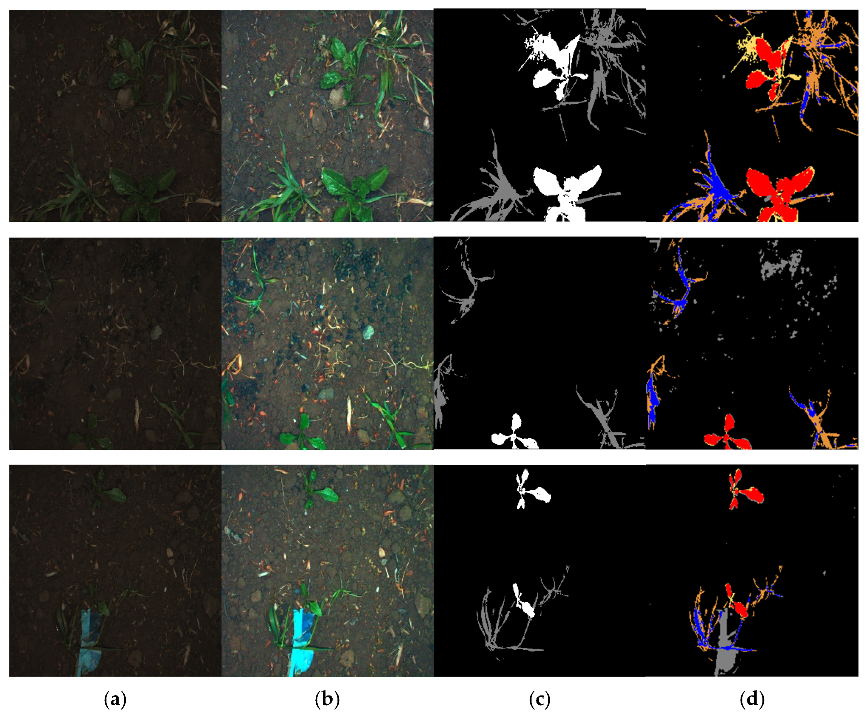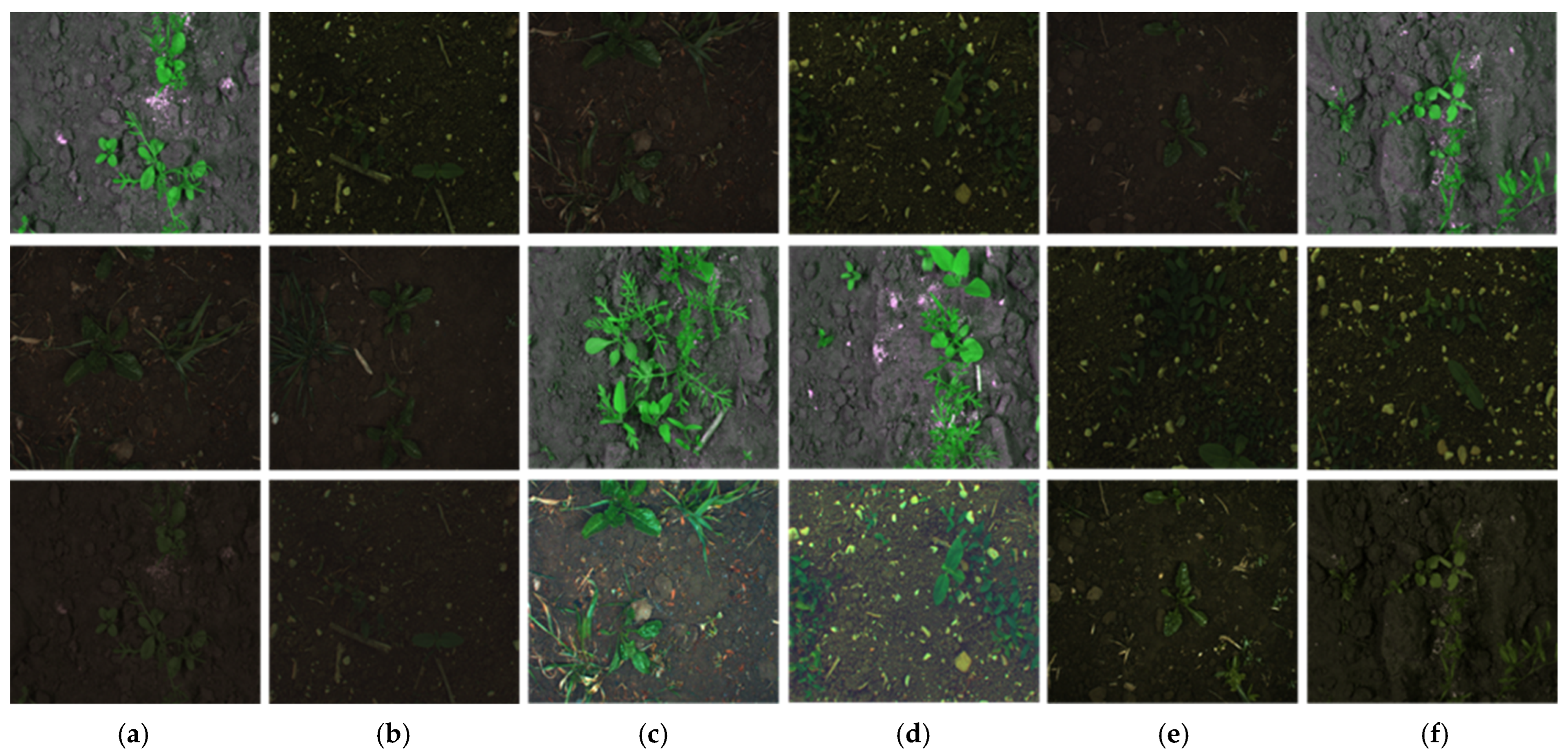 - Fawakherji, M.; Potena, C.; Pretto, A.; Bloisi, D.D.; Nardi, D. Multi-Spectral Image Synthesis for Crop/Weed Segmentation in Precision Farming. Robot. Auton. Syst. 2021, 146, 103861. [Google Scholar] [CrossRef]