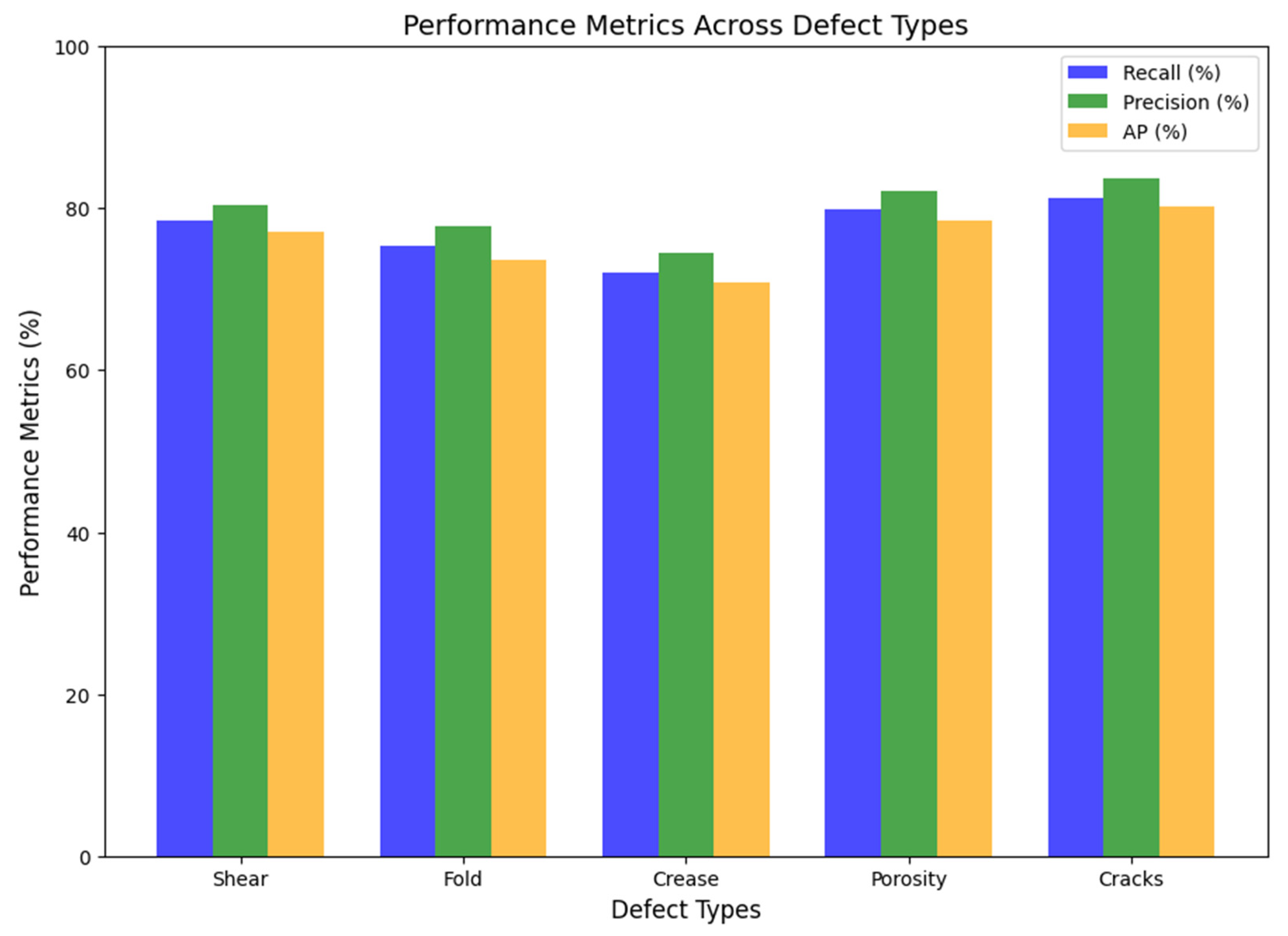 Identifying defect type: clearly classify each defect into predefined categories (cracks, porosity, shear, fold, crease).