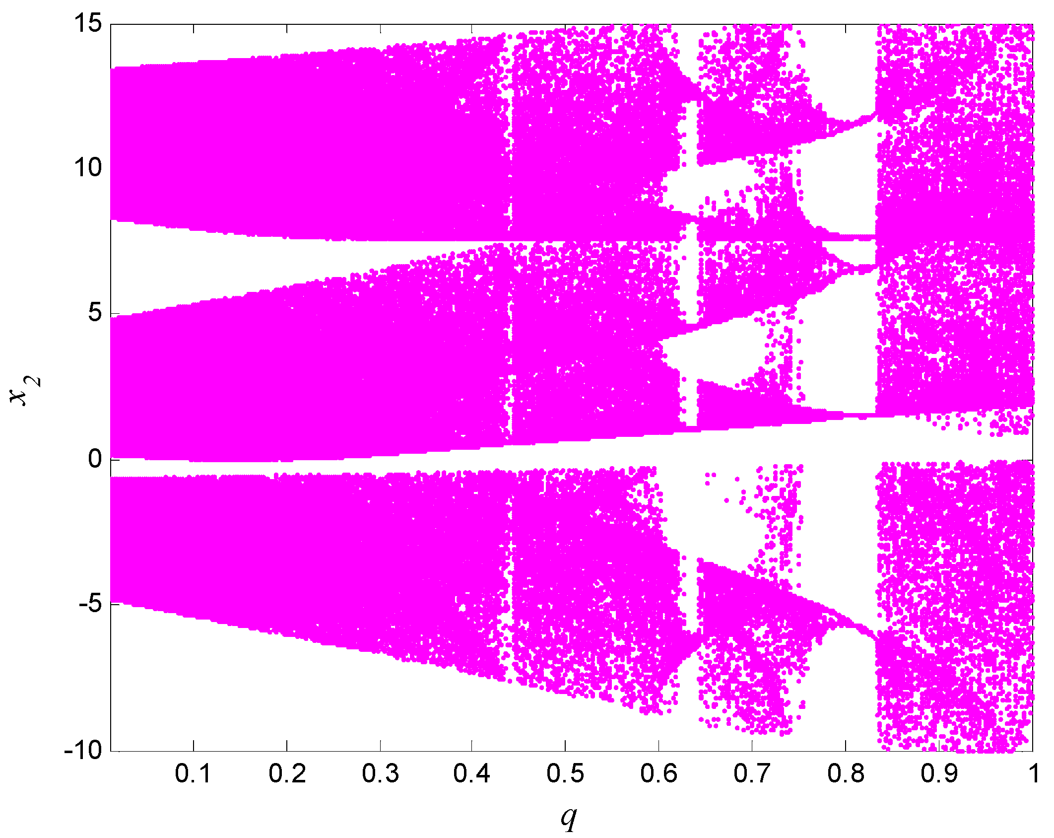 - Chang, S.-C. Bifurcation, routes to chaos, and synchronized chaos of electromagnetic valve train in camless engines. Int. J. Nonlinear Sci. Numer. Simul. 2021, 22, 447–460. [Google Scholar] [CrossRef]