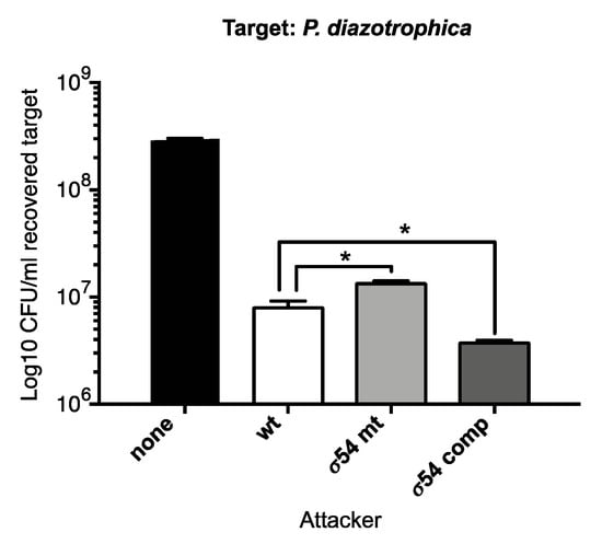 3.2.3. The Presence of σ54 Influences Interbacterial Competition