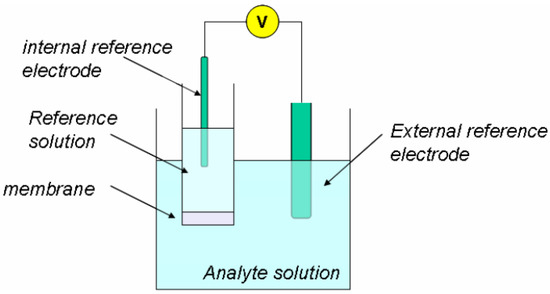 Electrochemical cell for a potentiometric measurement with ISE. [Reprinted from ref. [45], by Pavan M. V. Raja & Andrew R. Barron; via OpenStax CNX (CC BY 4.0)].