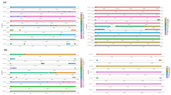 - Wilkins, D. Gggenes: Draw Gene Arrow Maps in “Ggplot2”. Available online: https://rdrr.io/cran/gggenes/ (accessed on 10 January 2024).