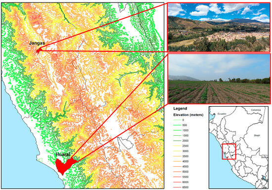 Location of the two study areas: district of “Jangas” and district of “Huaral.”