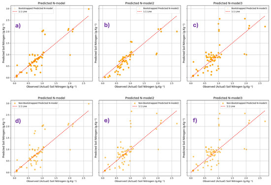 In summary, it was evident that the predictions of soil N from the non-bootstrapped methods differed significantly from those of the bootstrapped methods. This discrepancy rose from the distinct trends observed under the varying conditions in the two applications. As a result, several new insights may be derived, which are fundamentally useful for choosing a suitable, efficient, and straightforward modeling strategy.