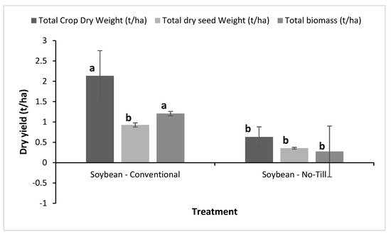 - Conventional Tillage: Soybean-Cover crop-Soybean (CT: SB-CC-SB) In these plots, there was crop rotation; soybean was followed by cover crop, then soybean again under conventional tillage; each crop was grown for 12 months, and the soil was cleared before the next crop was planted. The plant density was 270,000 plants per ha.