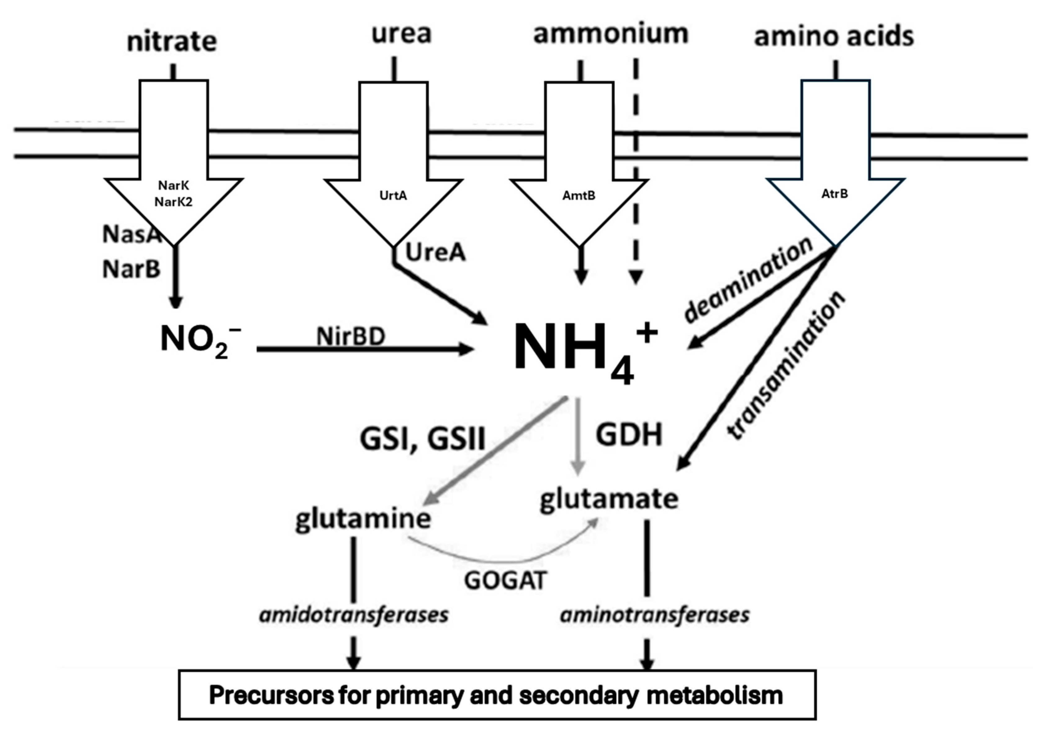 1.2. Nitrogen Uptake and Nitrogen Assimilation in Actinobacteria