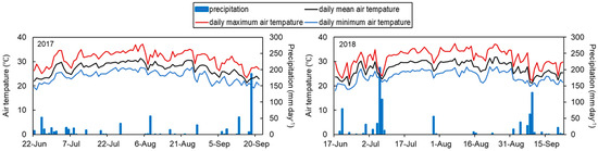 Air temperature and precipitation during the rice cultivation period.