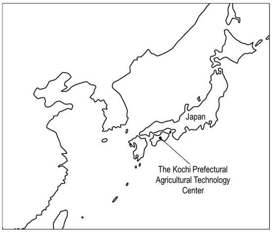 Location of the experimental greenhouse at the Kochi Prefectural Agricultural Technology Center (33°35′27″ N 133°38′39″ E).