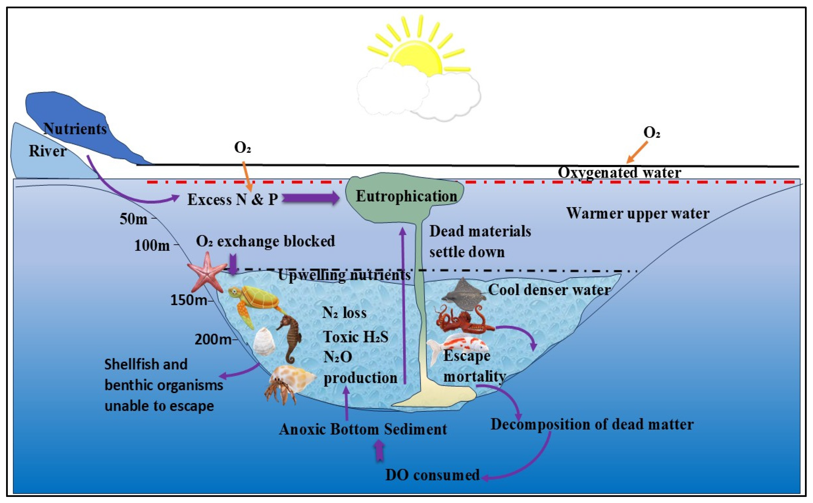 - Bhuiyan, M.M.U.; Rahman, M.; Naher, S.; Shahed, Z.H.; Ali, M.M.; Islam, A.R.M.T. Oxygen declination in the coastal ocean over the twenty-first century: Driving forces, trends, and impacts. Case Stud. Chem. Environ. Eng. 2024, 9, 100621. [Google Scholar] [CrossRef]