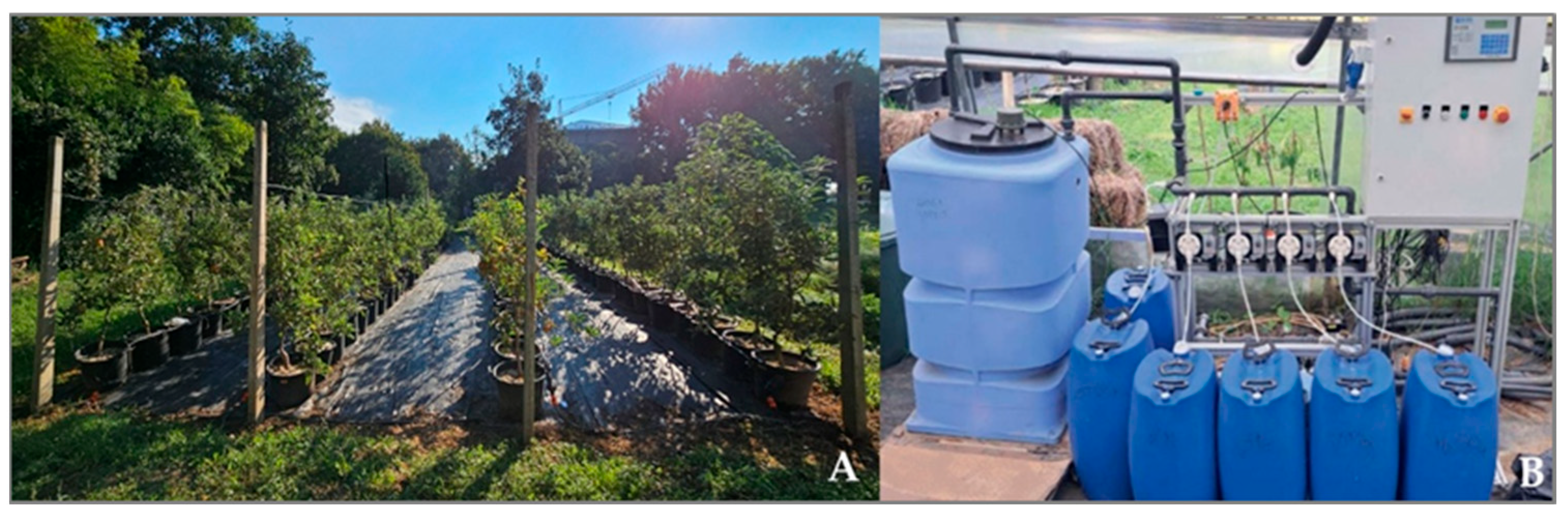 - Hoagland, D.R.; Arnon, D.I. The Water-Culture Method for Growing Plants Without Soil, 2nd ed.; California Agricultural Experiment Station: Berkeley, CA, USA, 1950. [Google Scholar]