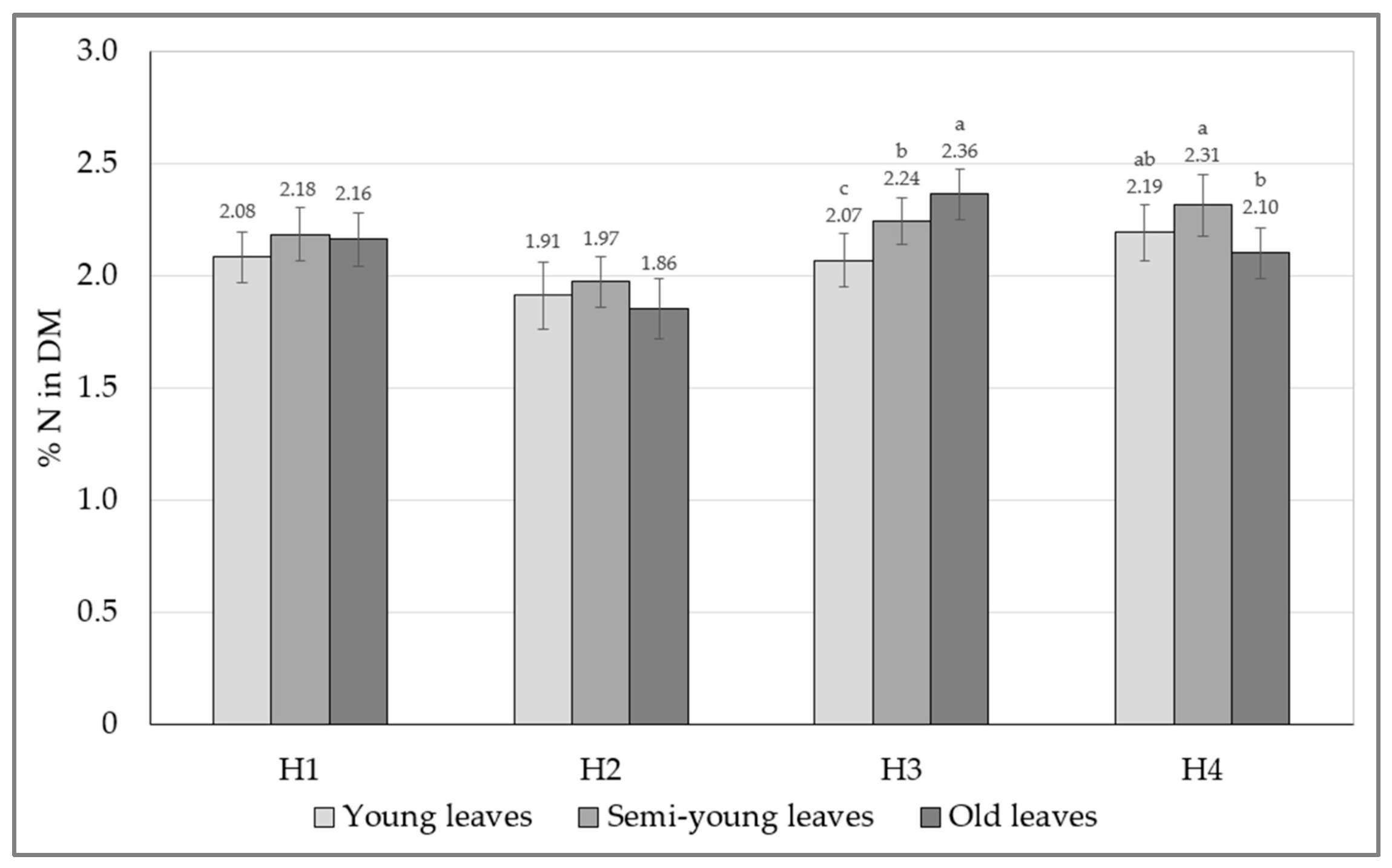 Influence of Fertigation Regimes on Nitrogen Concentration in Apple (Malus × domestica Borkh.) Leaves at Different Age Stages