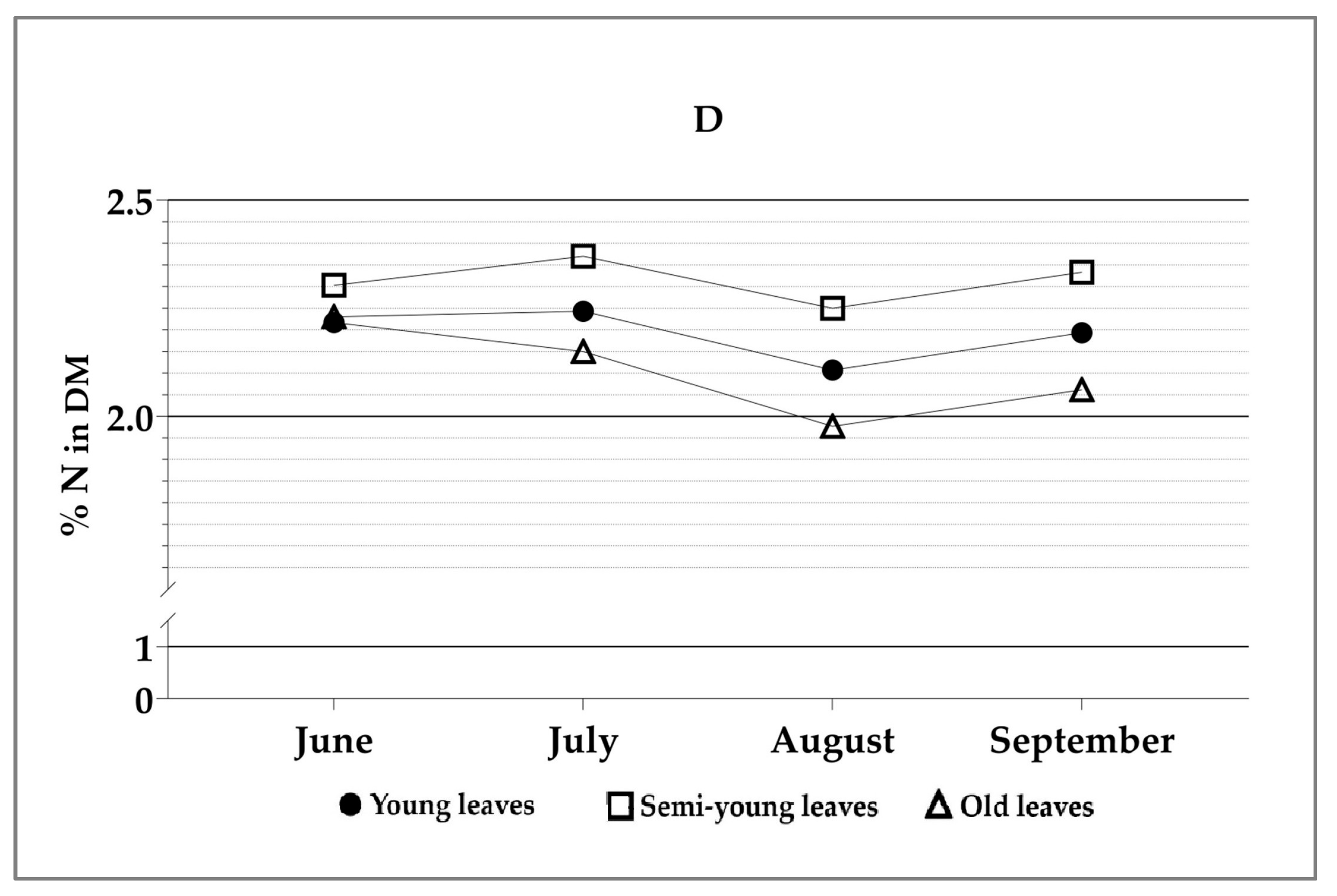 - Millard, P.; Grelet, G. Nitrogen storage and remobilization by trees: Ecophysiological relevance in a changing world. Tree Physiol. 2010, 30, 1083–1095. [Google Scholar] [CrossRef]