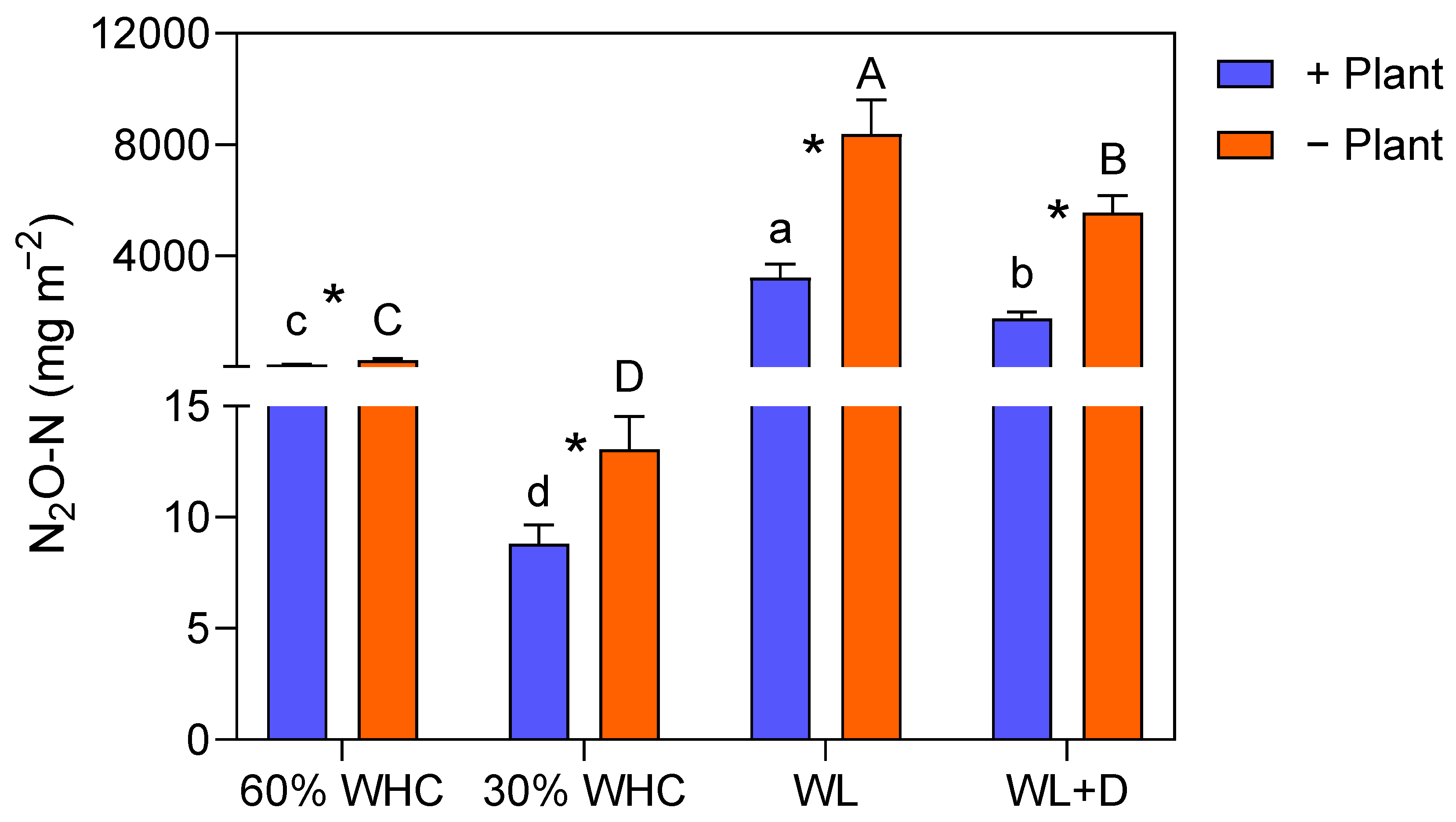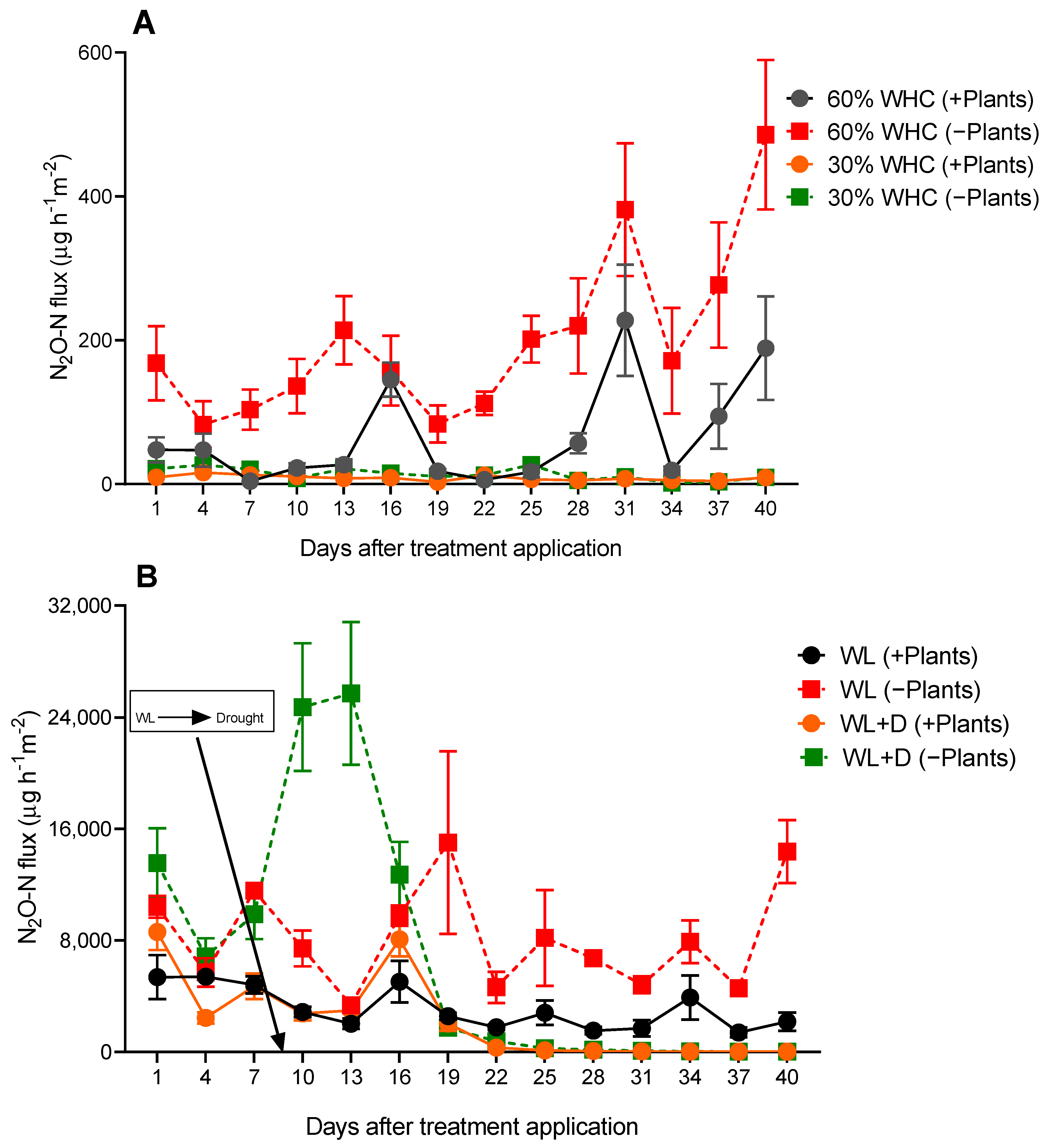 Wheat Plants Reduce N2O Emissions from Upland Soil Subject to Transient and Permanent Waterlogging