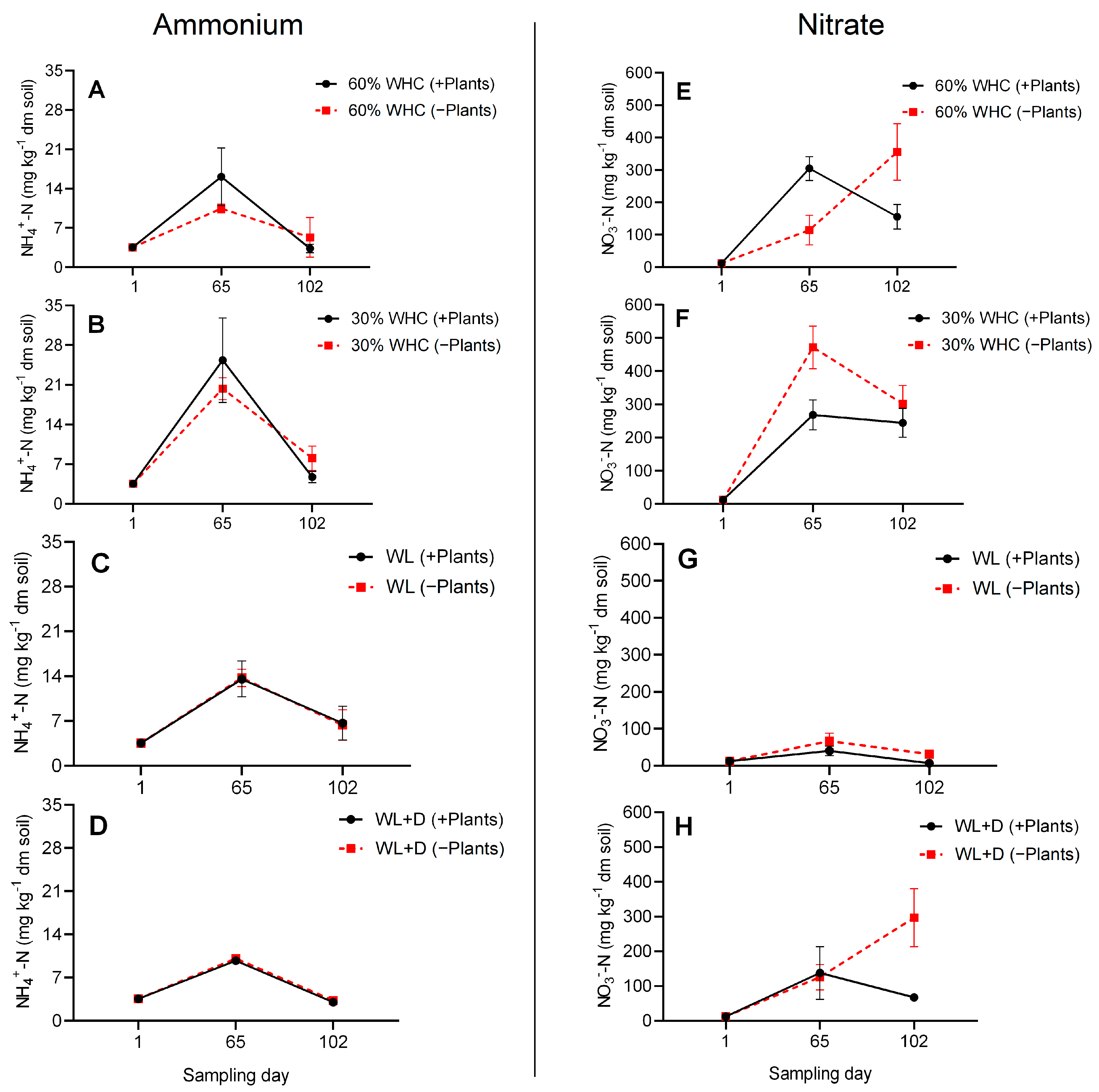- Ribeiro, P.L.; Singh, A.; Sagervanshi, A.; Naeem, A.; Mühling, K.H. High soil moisture rather than drying-rewetting cycles reduces the effectiveness of nitrification inhibitors in mitigating N2O emissions. Biol. Fertil. Soils 2024, 60, 627–638. [Google Scholar] [CrossRef]