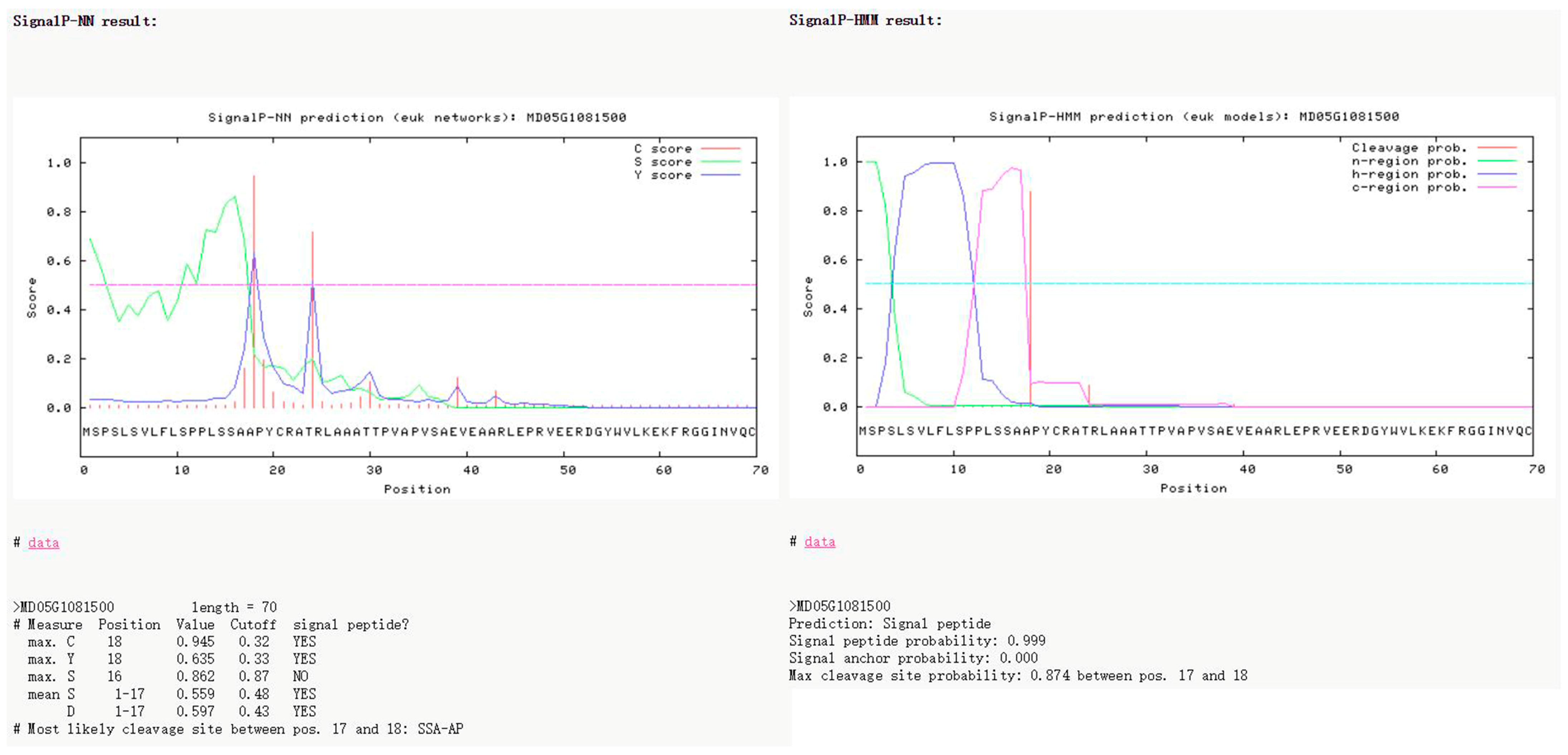 2.3. Subcellular Localization and Signal Peptide Prediction of Protein