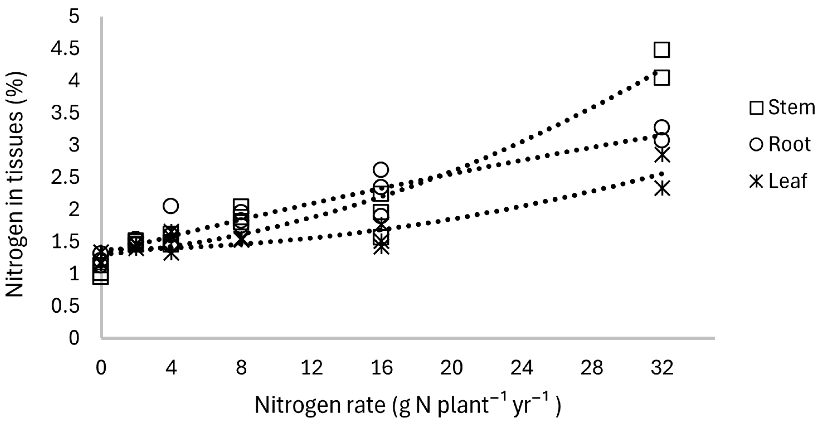 | N rate (g N plant−1 yr−1) | 21 | 16 | 0 |