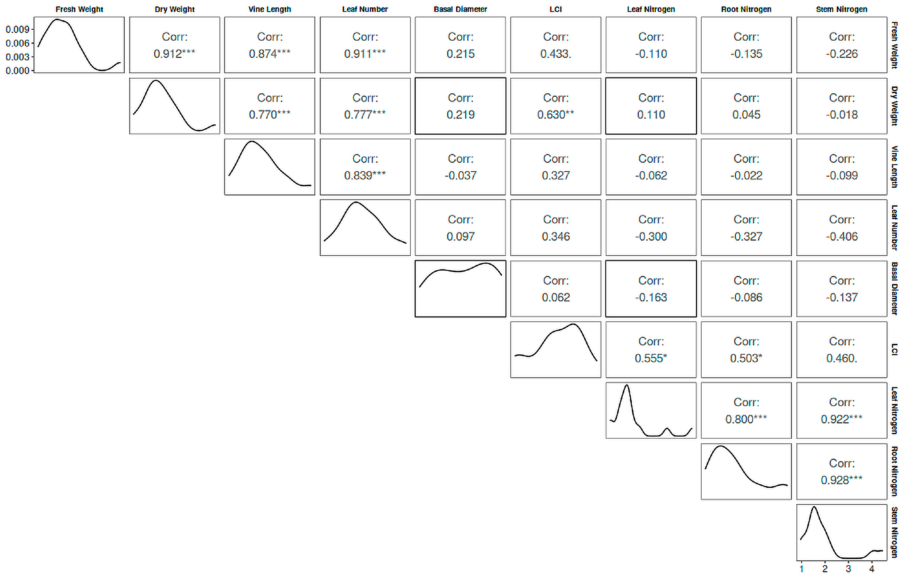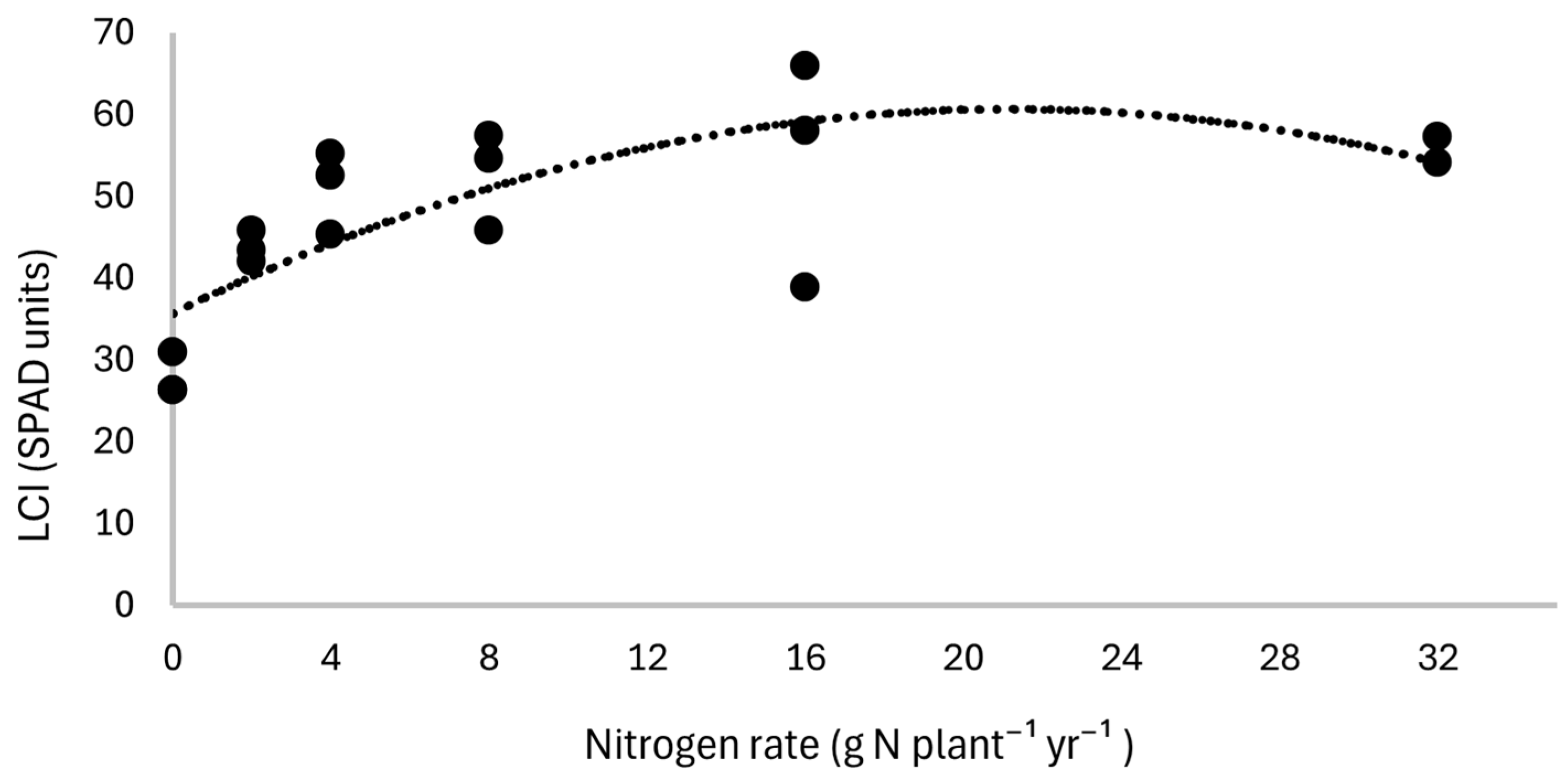 3.6. Correlations Among Growth, LCI, and Tissue N Concentrations