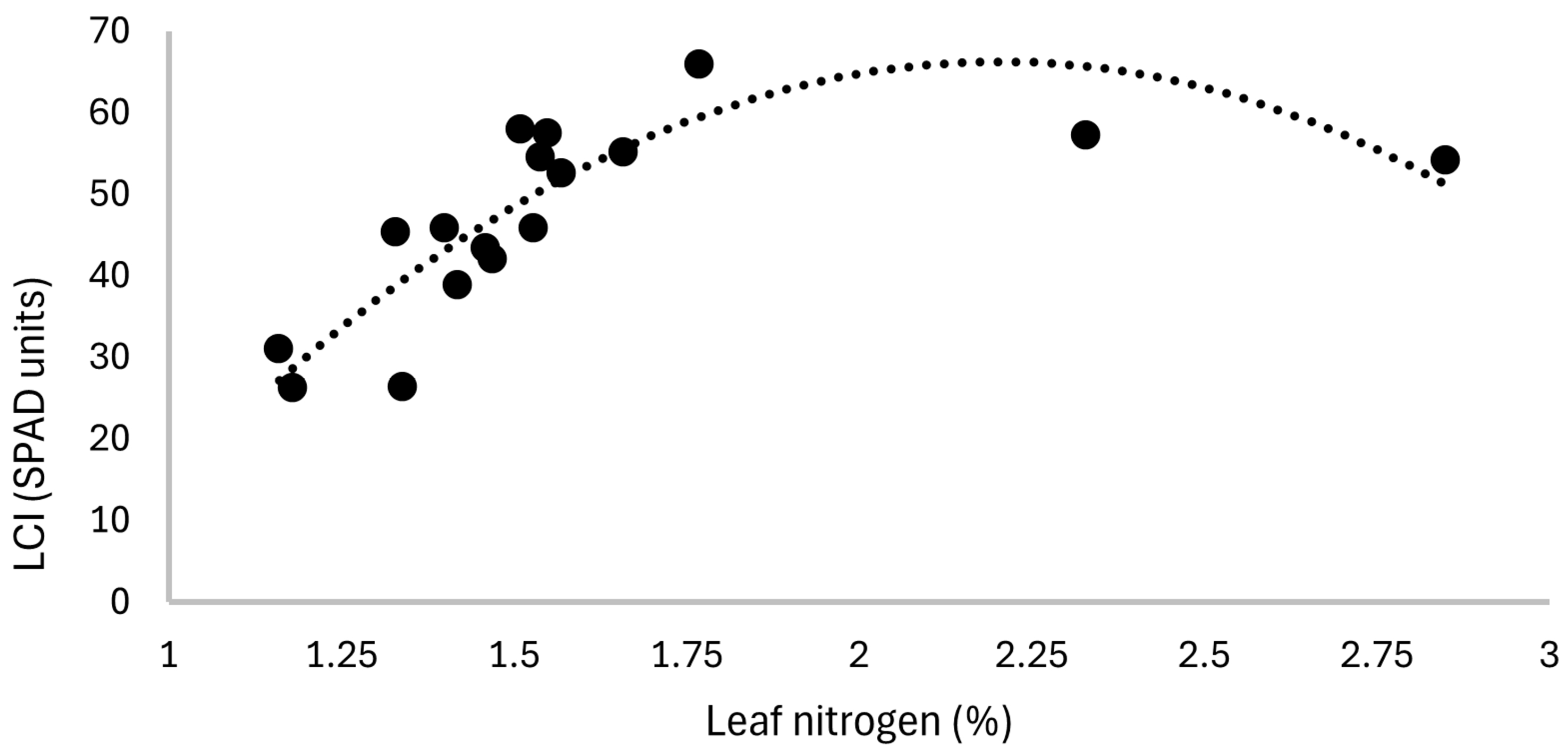 | Leaf N (%) | y = 0.0011x2 + 0.002x + 1.3783 | 0.83 | ||