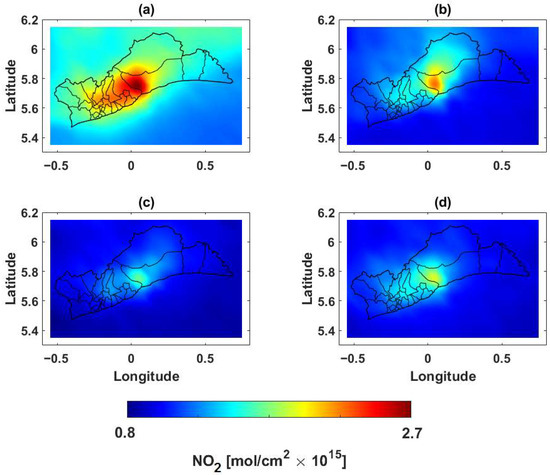 - Goldberg, D.L.; Anenberg, S.C.; Kerr, G.H.; Mohegh, A.; Lu, Z.; Streets, D.G. TROPOMI NO2 in the United States: A detailed look at the annual averages, weekly cycles, effects of temperature, and correlation with surface NO2 concentrations. Earth’s Future 2021, 9, e2020EF001665. [Google Scholar] [CrossRef] [PubMed]