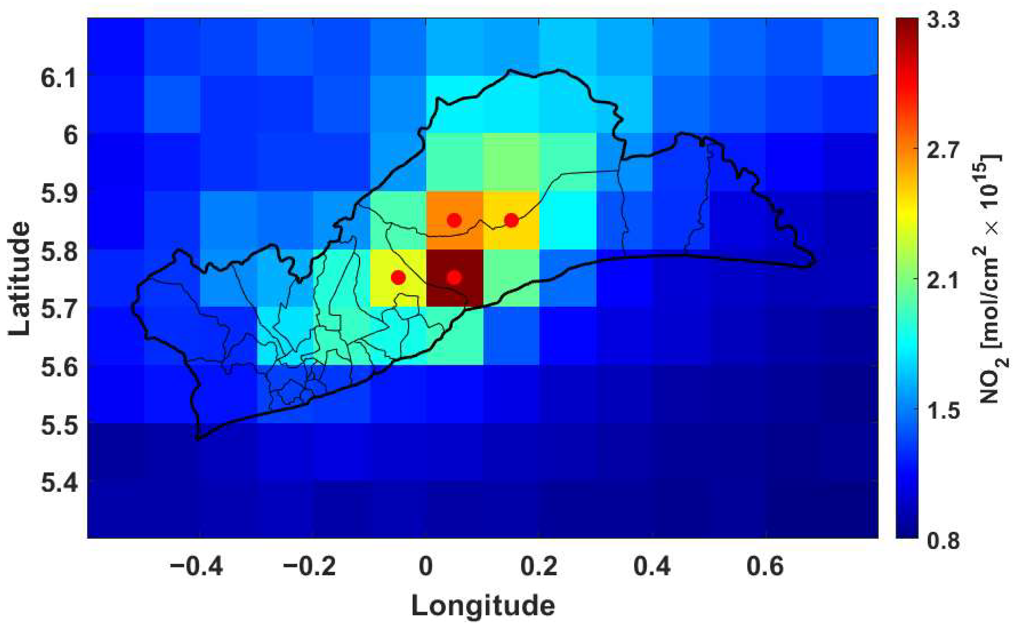 Satellite-Detected Nitrogen Dioxide (NO2) Hotspots in the Greater Accra Region, Ghana