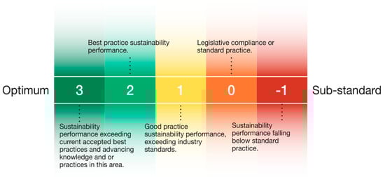 Each sustainability indicator was evaluated using a discrete ordinal scoring scale ranging from −1 (worst performance) to +3 (best performance), which was consistent with the scoring structure embedded within the SPeARTM framework. This scale allows negative scores to represent unsustainable or unfavourable performance, while higher positive scores indicate progressively improved sustainability outcomes. Scores were assigned based on the relative performance of each treatment technology under identical operational conditions rather than absolute benchmark values, as illustrated in Figure 6. In addition to the colour coding, the SPeARTM diagrams reflect the underlying MCDA scores ranging from −1 to +3, such that differences in colour intensity and radial extent indicate relative differences in sustainability magnitude rather than absolute numerical values.