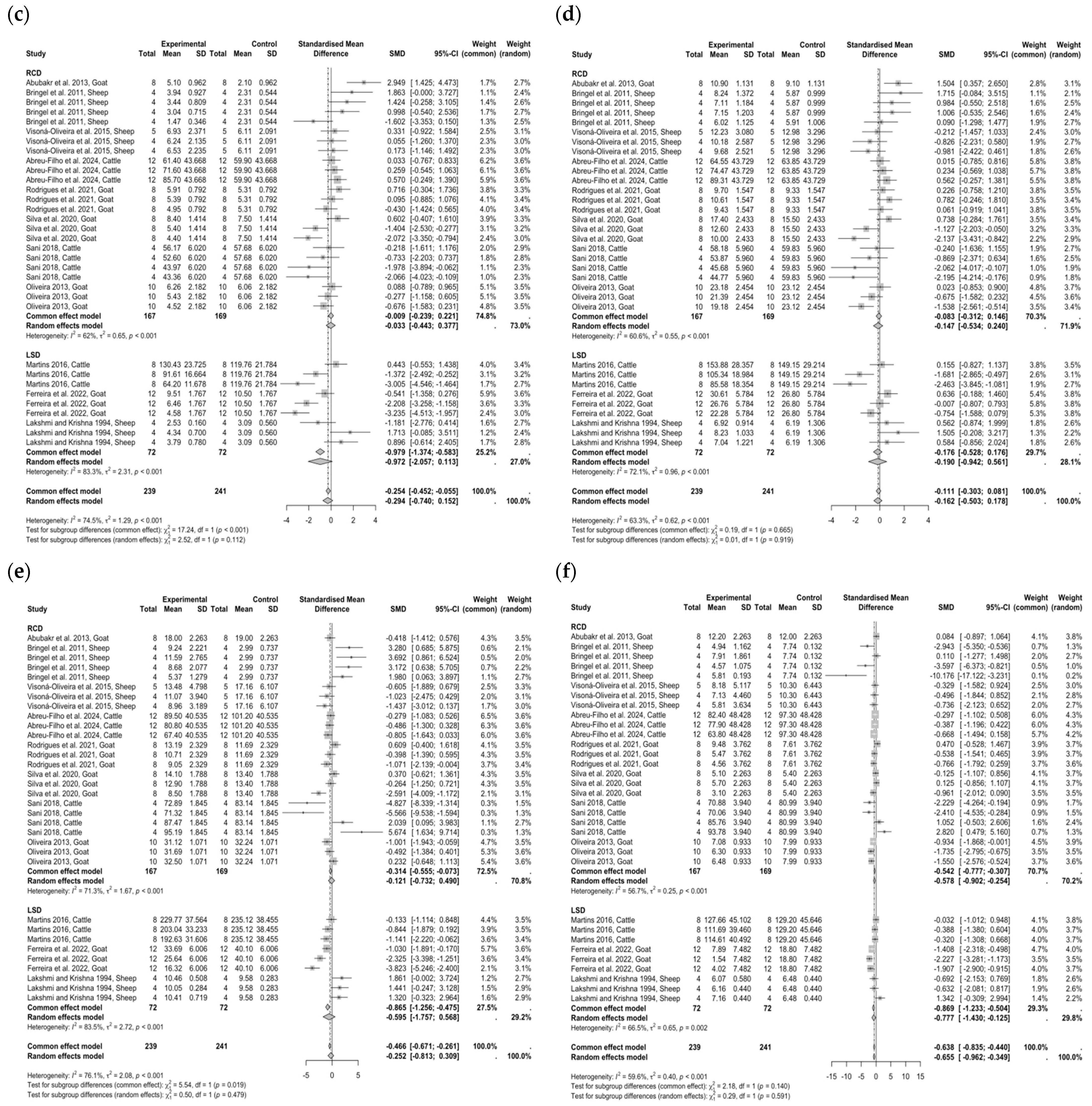 | N intake | Goat | −0.792 | −1.428; −0.155 | 76.7 | <0.001 | <0.001 |