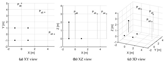 In this case, omitting the TDOAs, there are 12 variables, 3 for each antenna. The analytic calculation of the error generated in each dimension depends on the other dimensions of the PD source so the sole definition of the problem requires a high degree of sophistication and its solution requires high computational resources. For this reason, it is difficult to undertake the analytic calculation of the propagated error. In this paper, the propagated error is quantified by simulations as described in Section 4.