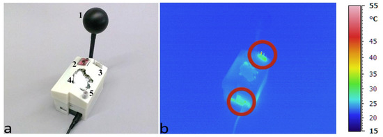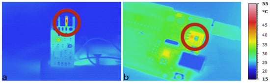 Thermal imaging: (a) Anemometer; (b) Voltage regulator of Arduino UNO.