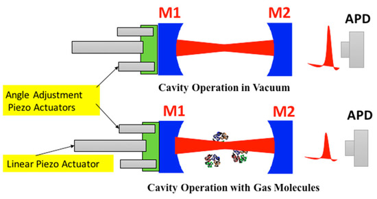 Figure 7 shows the feedback setup of laser absorption based breath analysis. The reflected light from optical cavity contains the information of resonance. This reflected light can be used to generate an error signal by tilt locking method. The error signal indicates how far cavity is from resonance. The error signal is processed with PID controller and given to linear piezo actuator of two mirror cavity. According to generated error signal, the piezo either expands or shrinks. Thus cavity length can be increased or decreased with piezo actuator. Thus total resonance condition can be maintained throughout breath analysis operation. The dynamic range of piezo actuator is 20 μm.