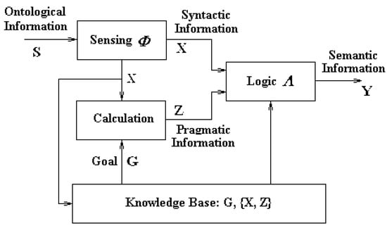 It is evident that both the model in Figure 5 and the steps 1–3 clearly describe the principle and the processes for semantic information (with the accompanied syntactic as well as pragmatic information) generation from the object (ontological) information via the system’s functions of mapping, retrieving (recalling), calculation (evaluation) and mapping and naming. All of the functions are theoretically valid while technically effective and feasible.