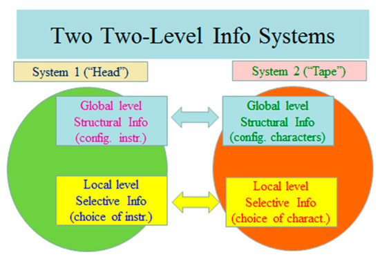 Compounding of computational systems is based on the fact that at each level we can distinguish to levels in the information system: global (e.g., structure or configuration of characters on the tape) and local (e.g., selection of a character for a particular cell (Figure 3).