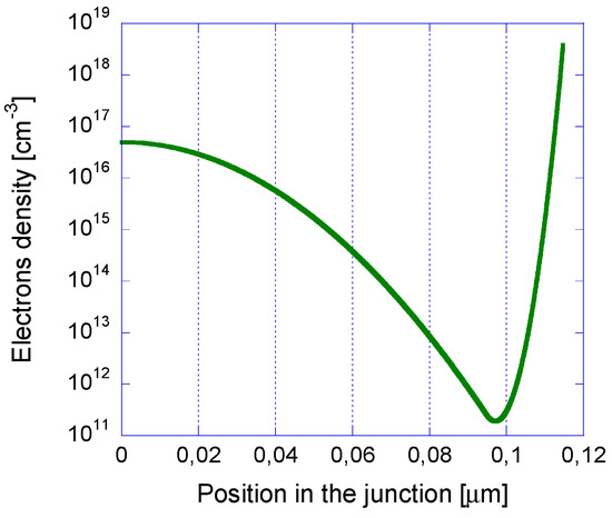 Assuming the zero bias condition, and the zero potential at x = 0, the electron density is given by: