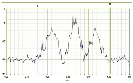 Figure 5. Pt line profile. Line width is of about 50 μm, line height is of about 1 μm.