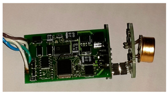 Figure 7. Smart sensor module enabling the stabilization of sensor temperature, humidity compensation, and transmission of information about gas concentration, type of sensor, calibration, etc. in plug-and-play regime. Smart sensor board is 25 mm in diameter.