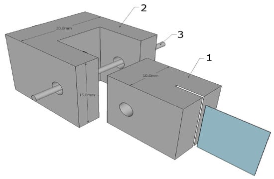 Figure 1. The clamps are used to mount the polymer samples into the tensile-test apparatus (MTS) while allowing for in-situ measurements on the samples during stretching. The “active” area between the two clamps has a length of 80 mm and a width of 10 mm.