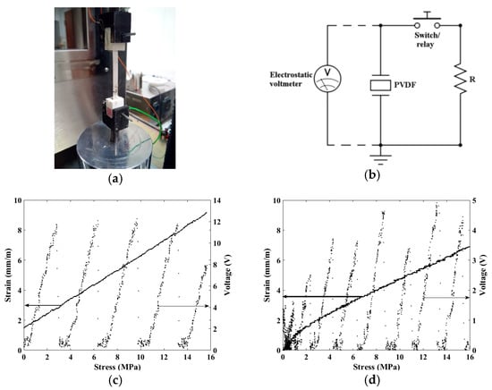 1]. A switch is used to periodically reset the voltage to zero by discharging the sample into a resistance load, leading to a saw-tooth recorded voltage during the tensile cycle (