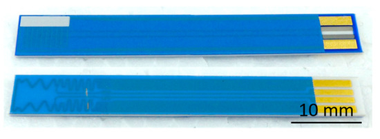 As basic substrates, a 96% alumina (Ceramtec) with already screen-printed and fired platinum heaters on the reverse side and a single thick-film type-S thermocouple (Pt/PtRh, DuPont, for details see [9]) for temperature control on the front side were used. Then, a low temperature transfer tape (LTTT, ESL 41020) was laminated and co-fired at 850 °C onto the front side.